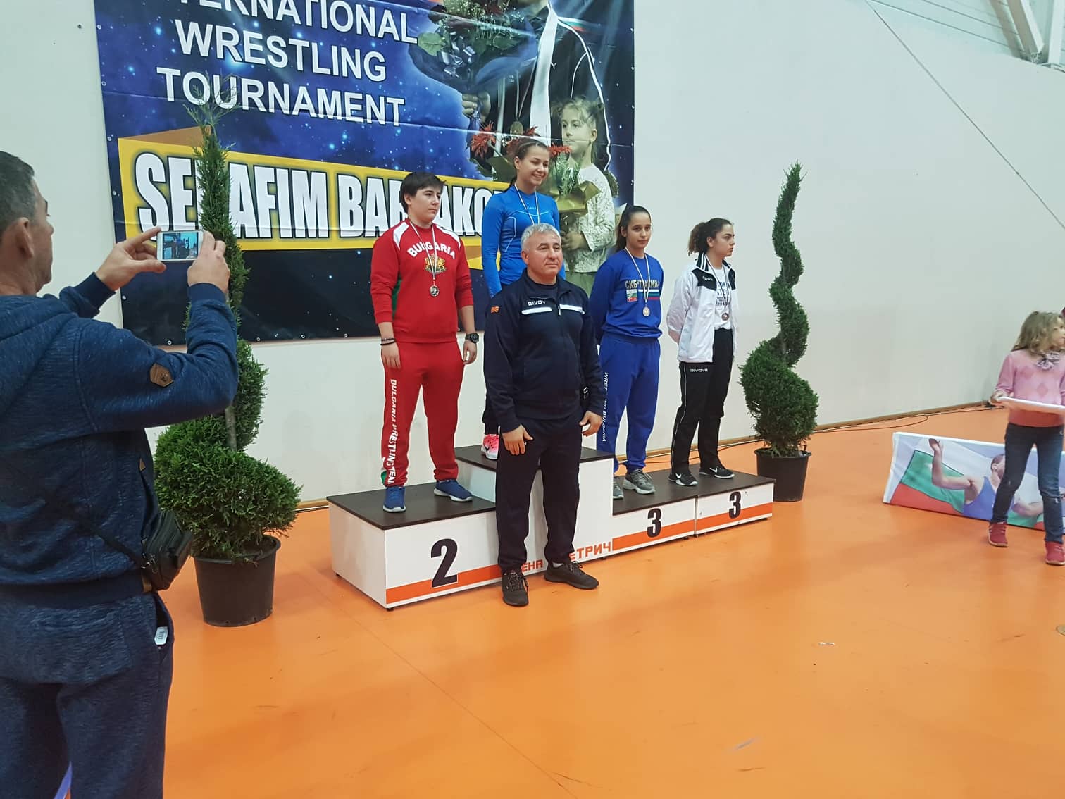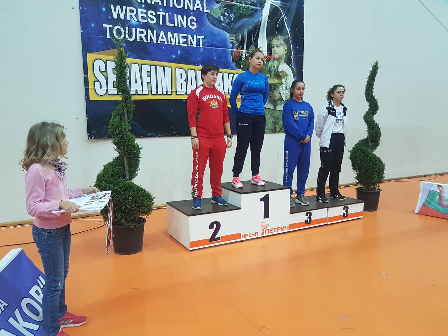 Вести 09/10/2018 VIII-от меѓународен турнир во слободно борење и женско борење ,,СЕРАФИМ БАРЗАКОВ” (09-10.11.2018 година, Петрич, Бугарија) Бојана Лазаревска 1-во место (златен медал), (65кг) Tags: fights, ring, updatesShare: